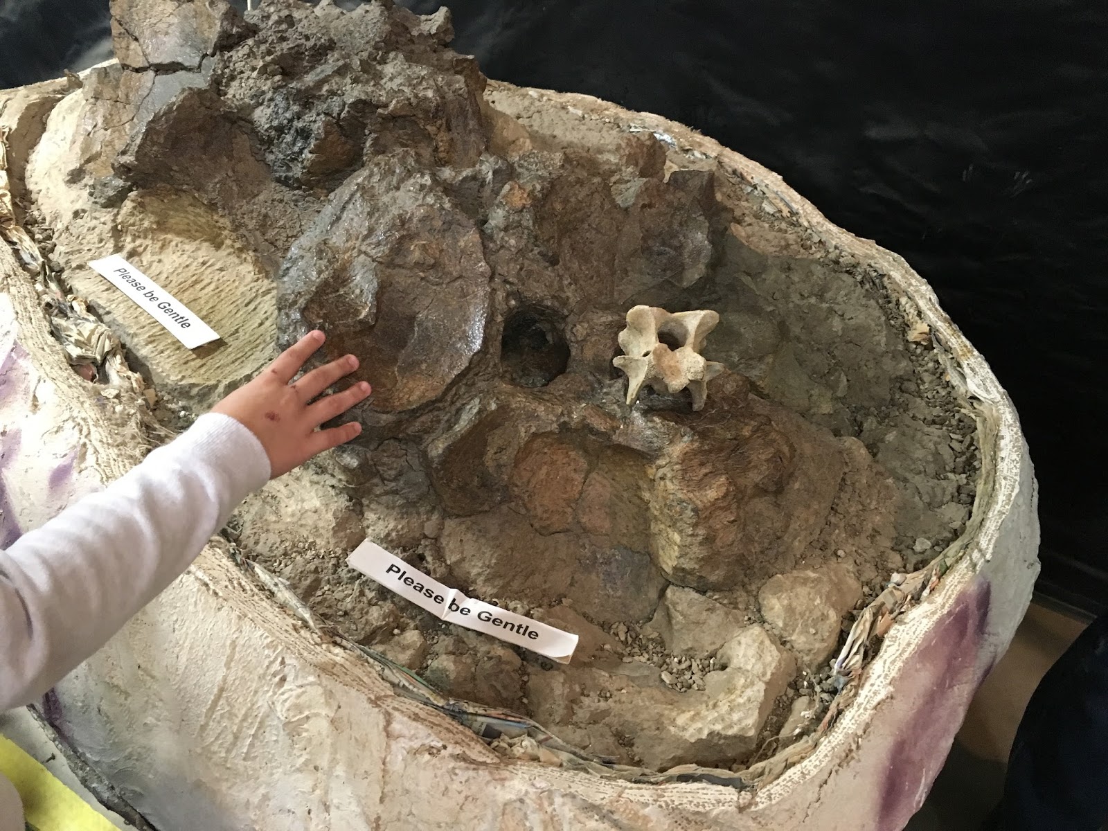 volunteers the bones would remain wrapped in their dinosaur jackets of alfoil, newspaper and Plaster of Paris. They wrap the fossils in these jackets to protect them until the can get to them. The volunteers then chip away the rock (usually sandstone) to get to the fossil underneath – a painstaking process.